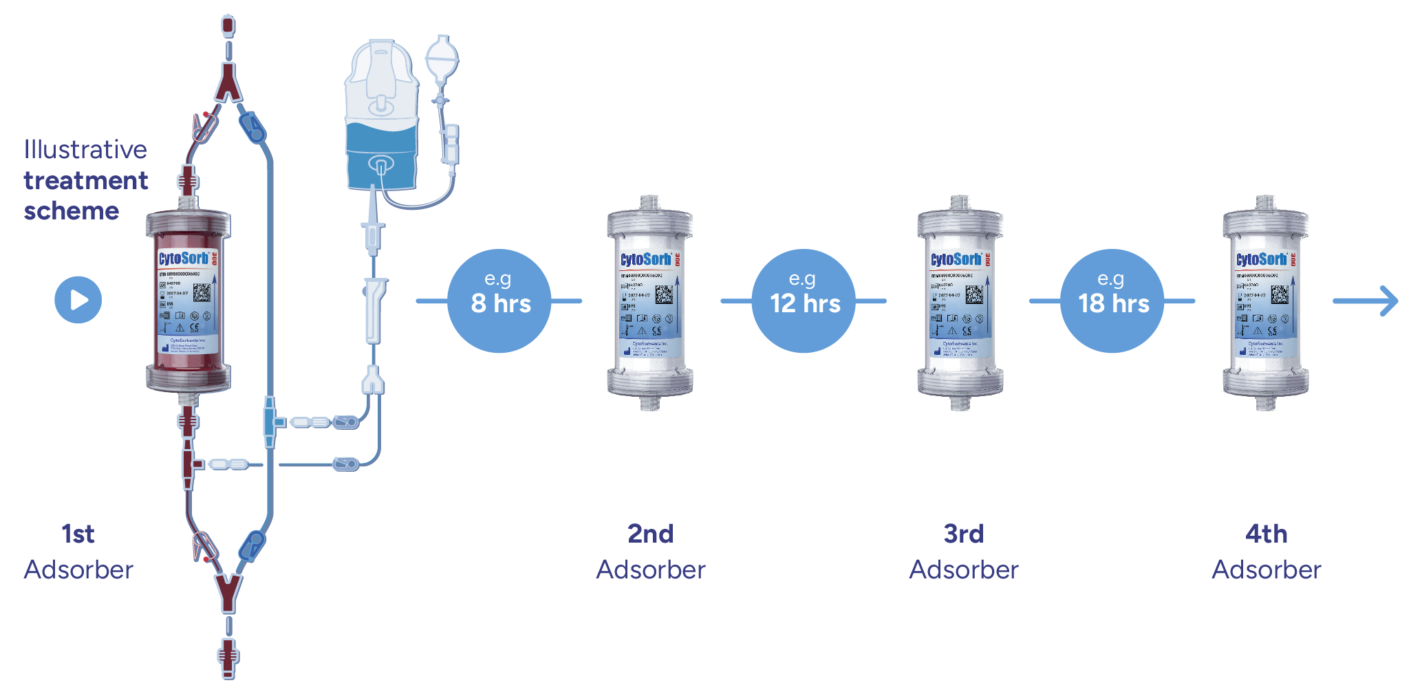 Hemoadsorption procedures frequently require multiple adsorber cartridges according to treatment protocols and clinical assessment.